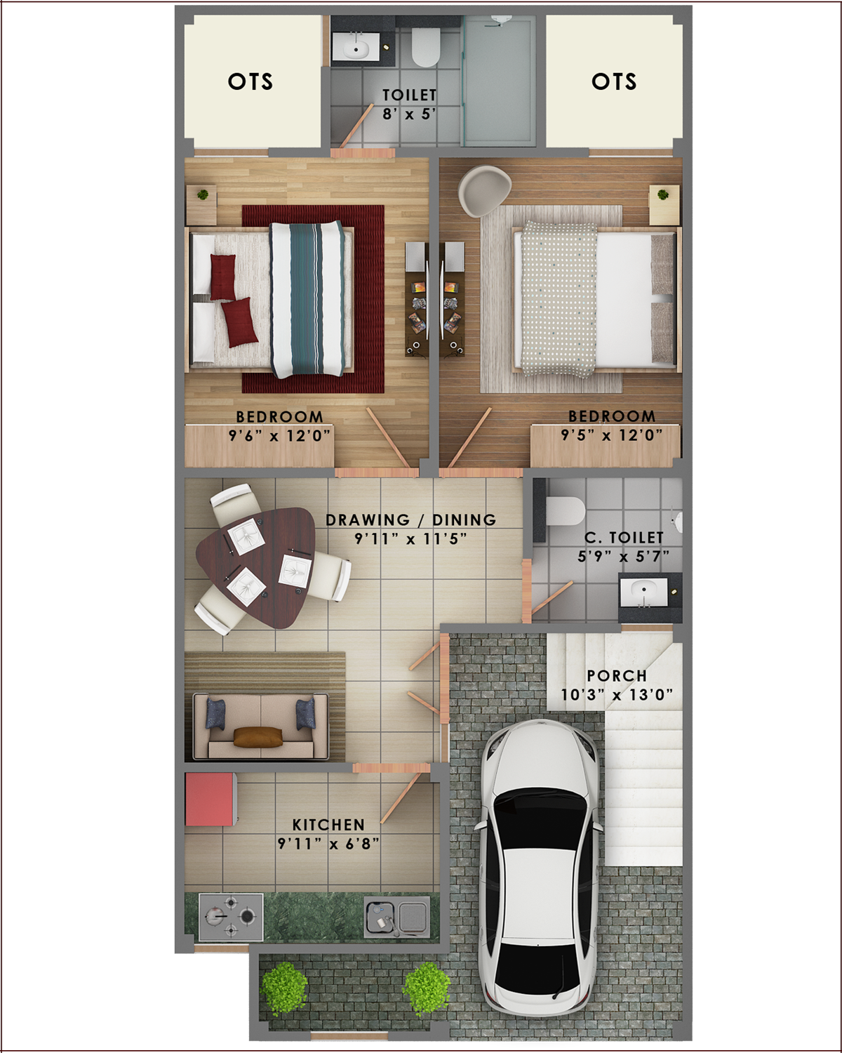 | Flooring | Anti skid ceremic tiles (Kajaria / Varmora / RAK) |